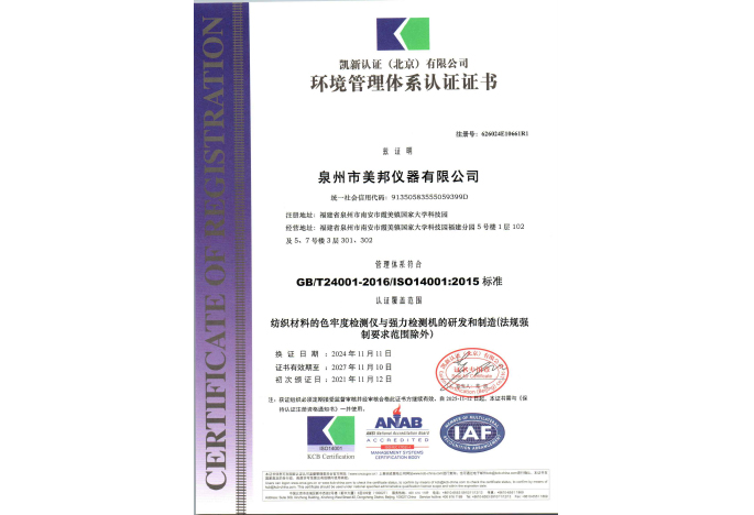 +ISO環(huán)境管理體系認(rèn)證證書