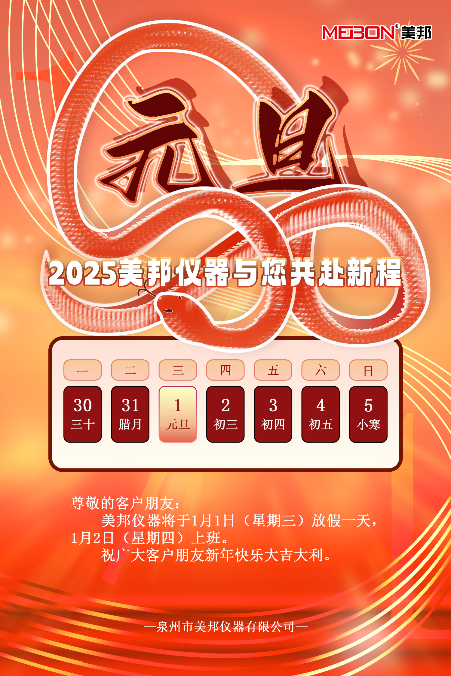 美邦儀器2025年元旦放假通知
