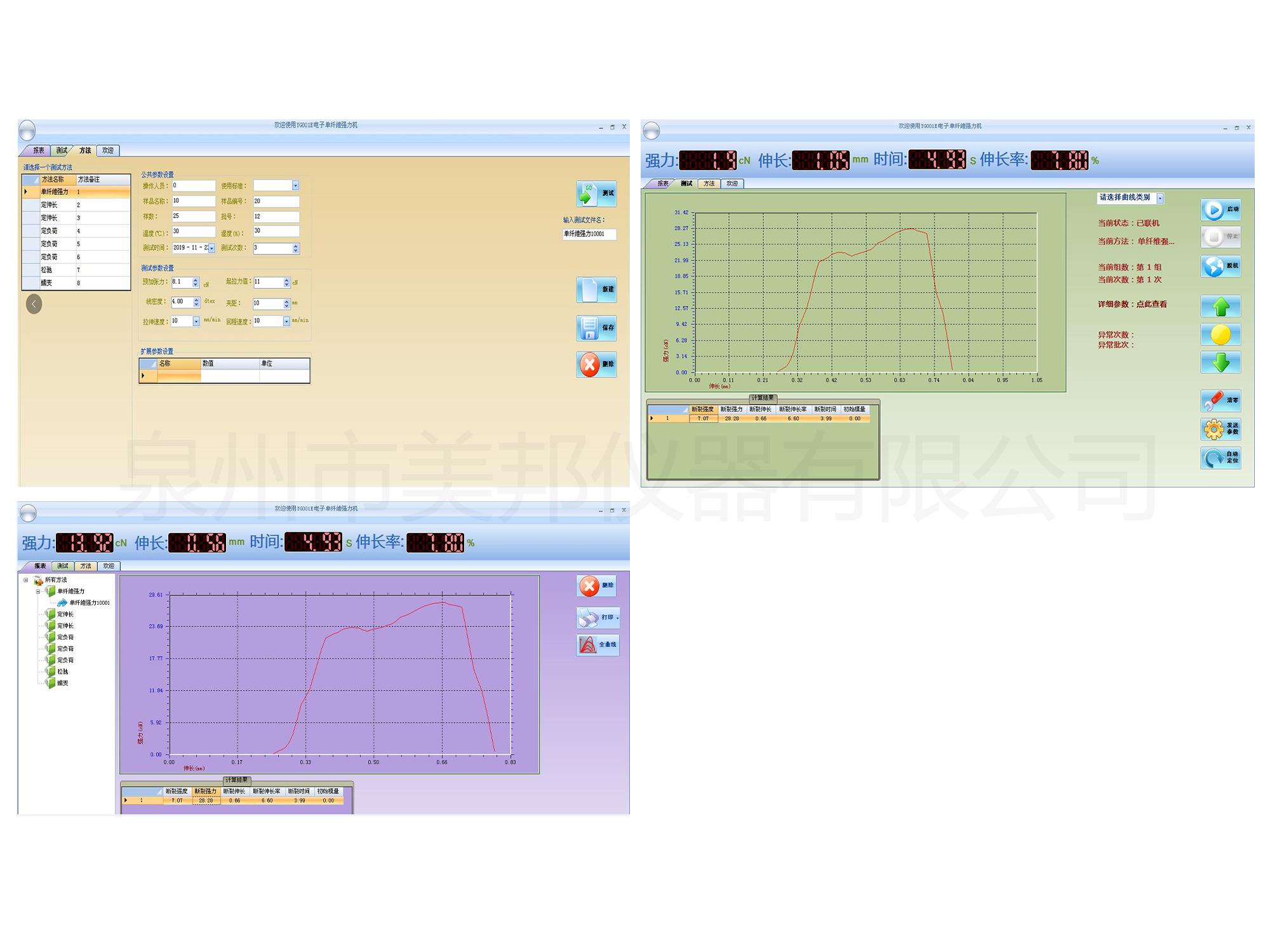 用于測定各種自然纖維、化學(xué)纖維、金屬絲、頭發(fā)、碳纖維等材料的斷裂強(qiáng)力、斷裂伸長率。